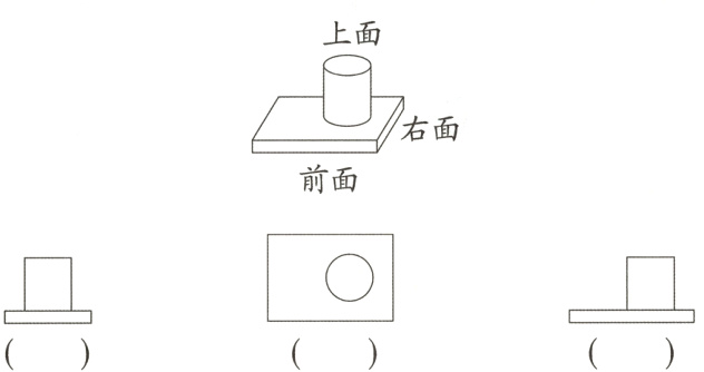 4. 下面三幅图分别是从哪个位置看到的?把相应的位置填在括号里。