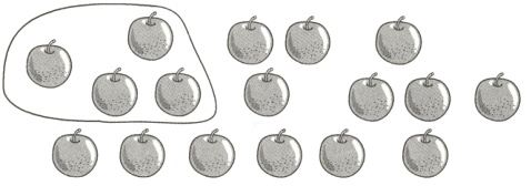 1. 一共有( )个苹果,每( )个分一份,可以分成( )份,还剩下( )个。