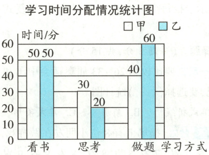 (2)从条形统计图看出,( )同学的思考时间多一些,多( )分。(6分)