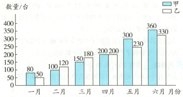 2. 如图是某家电商场2023年上半年甲、乙两种品牌的冰箱销售数量情况统计图。请看图解答问题。(7分)