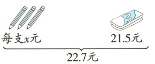 (1) $3x + 21.5 = 22.7$ $x = 0.4$