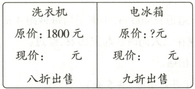 (1)洗衣机打折后是多少钱?比原价便宜了多少钱?(4分)