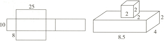 1. 计算下列图形的表面积。(单位:cm)(每题5分,共10分)