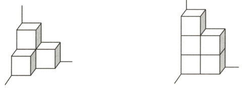 2. 几个棱长为2 cm的小正方体堆放在墙角处,分别计算露在外面的面积。(每题5分,共10分)