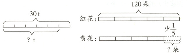 $30\times(1 - \frac{1}{5}) = 24$(t);$120\times(1 - \frac{1}{5}) = 96$(朵)
