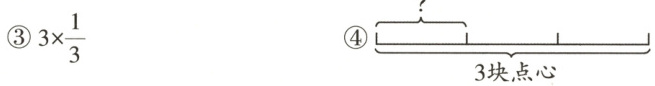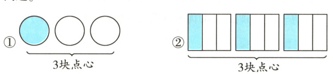 1. 新趋势 算理理解 妈妈买了3块点心,小宁吃了其中的$\frac{1}{3}$,小宁吃了几块点心?下面( )的方法能够正确解决题目中的问题。