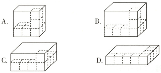 5. 如图,分别用8个相同的小正方体测量4个盒子的容积,( )的容积最大。