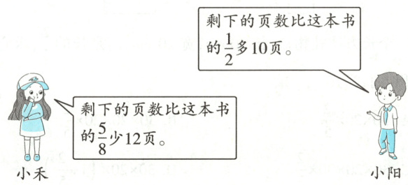 小阳:$192×\frac{1}{2}=96$(页) $96 + 10 = 106$(页)