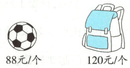 足球:$88÷\frac{8}{10} = 110$(元) 书包:$120÷\frac{8}{10} = 150$(元) 答:足球原价是110元/个,书包原价是150元/个。