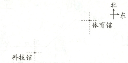提示:根据题意,先在图上以科技馆为观测点,在其北偏东 40°方向画出一条射线,再以体育馆为观测点,在其南偏西 70°方向画出一条射线,两条射线相交于一点,则这点就是图书馆的位置,据此解答即可。