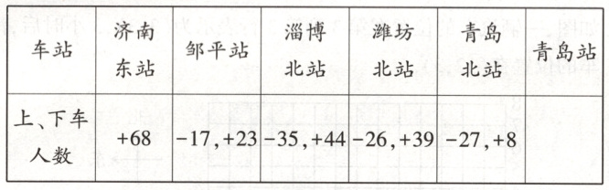 2. 一列高铁从济南东站始发,开往终点站青岛站,7号车厢旅客人数变化情况如表。(8分)