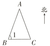 8.如图是一个等腰三角形,∠1=70°,那么点A在点C的北偏( )( )方向上。