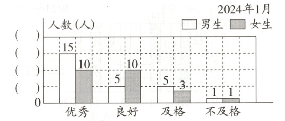 (2)体能优秀的男生人数比女生人数( );体能不及格的男生人数和女生人数( )。