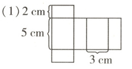 (1)表面积:2×3×2+3×5×2+5×2×2 = 62(平方厘米) 体积:2×3×5 = 30(立方厘米)