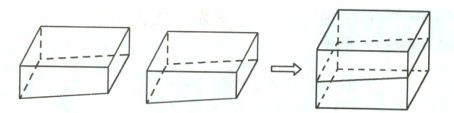 ①小可同学:“它不是一个长方体,但可以通过割、补的方法(如图)就可以变成长方体了,所以它的容积大小范围就在( )$m^{3}$和( )$m^{3}$之间。”(5分)