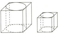 5. >举一反三 两块正方体花岗岩的体积之差为25 dm³,如果把这两块花岗岩分别加工成两个最大的圆柱(如图所示),这两个圆柱的体积差,( )。