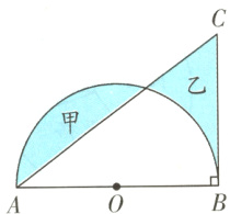 4. 图中涂色甲的面积比涂色乙的面积多28 cm²,AB = 40 cm,BC垂直于AB,求BC的长。(5分)