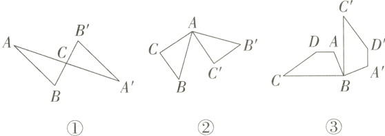 以点A为中心旋转的图形是( ),以点B为中心旋转的图形是( ),以点C为中心旋转的图形是( )。