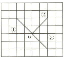 1. 如图所示,图形②可以由图形①绕点O( )时针旋转( )°得到,也可以由图形③绕点O( )时针旋转( )°得到。