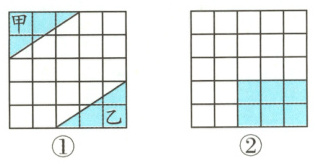 2. 如图所示,将图①中的三角形甲平移到图②中所示的位置,与三角形乙拼成一个长方形。正确的平移方法是( )。