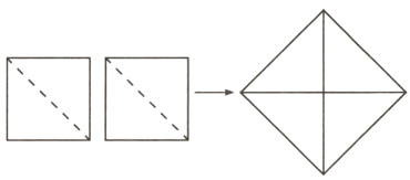 4. 新素养 应用意识 妈妈买了一张方桌,同时买了两块同样的正方形桌布。但是买回家发现都比桌面小了一些,妈妈说:“真可惜,白白浪费了两张布。”阳阳说:“我有办法。”只见他在两块正方形桌布上各剪了一刀,然后拼成一个更大的正方形,聪明的你知道他是怎么剪、怎么拼的吗?请画出示意图。(4分)