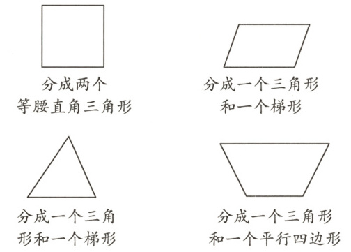 四、根据要求在下面每个图形中画一条线段。(每题1分,共4分)