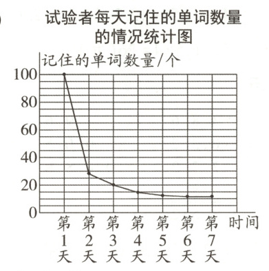 2. 新趋势 学科融合 为了找到记忆遗忘的规律,德国心理学家艾宾浩斯做了一个试验。通过试验者第一天学习记住100个英语单词,以后每一天对这100个单词进行听写,得到这样一组数据。(12分)
