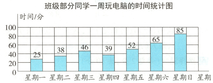 (2)这些同学这一周平均每天玩电脑的时间是( )分。(2分)