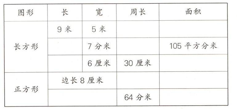 |长方形| |7分米| |105平方分米|