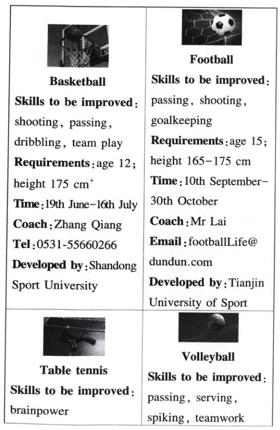 3.If you are 13 and 1.65 meters tall, which course can you take?