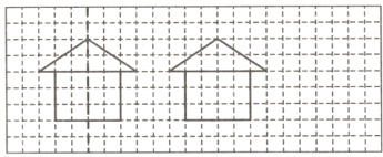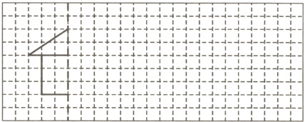 1. 先根据对称轴补全轴对称图形,再画出这个轴对称图形向右平移8格后的图形。