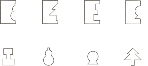 2. 第二行的图案分别是从第一行哪张对折的纸上剪下来的?连一连。