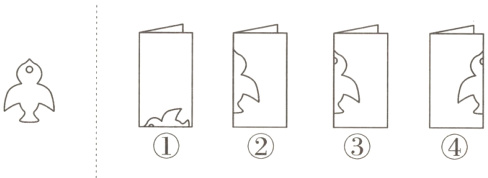 1. (常考题)在美术课上,东东学习了利用轴对称的知识来剪纸。他想剪出一只小鸟,尝试了四种剪法(如右下图)。哪一种剪法可以剪出左边这只小鸟?