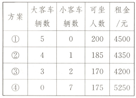 2.(重点题)三年级师生共168人去春游,小客车限乘客25人,每辆租金是750元;大客车限乘客40人,每辆租金是900元。怎样租车最省钱?需要多少元?