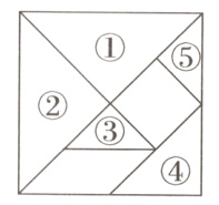4. 如右下图,在七巧板中,①~⑤每个三角形分别占原正方形(一套七巧板)的几分之几?③⑤两个三角形合起来与④一样大吗?由此你能得出什么结论?
