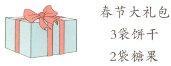 $318\div3 = 106$(个) $318\div2 = 159$(个)$106<159$,最多能配成106个大礼包。提示:首先分别用商店有的饼干和糖果的数量除以每个大礼包需要的饼干和糖果的数量,求出它们各能配成多少个大礼包;然后比较大小,判断出最多能配成多少个大礼包即可。