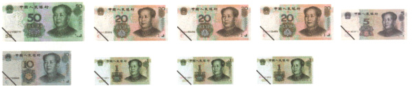 (1)可以圈1张50元,1张5元和3张1元;也可以圈2张20元,1张10元,1张5元和3张1元。