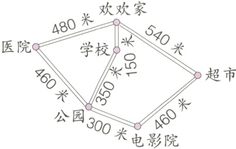 答:从欢欢家出发经过超市到电影院正好是1千米。