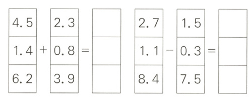 $0.9 + 1.5 =$ $1.6 - 0.7 =$