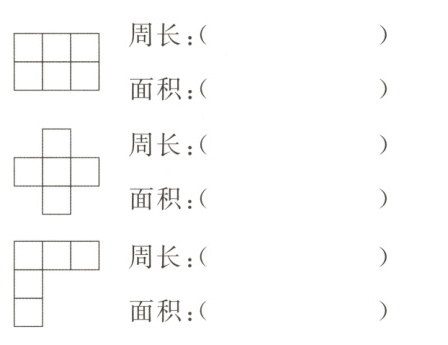 4. 用边长为1厘米的小正方形拼成下面的图形,它们的周长和面积分别是多少?