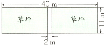 2. 如图所示,在一块长方形地的中间修一条小路,小路两边种上草坪。两边草坪的面积是多少?