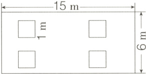 15×6=90(平方米) 1×1×4=4(平方米) 90−4=86(平方米) 答:草坪的面积是86平方米。