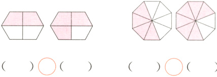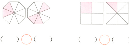 $\frac{2}{8}<\frac{3}{8}$ $\frac{1}{4}>\frac{1}{8}$