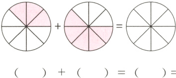 (1)$\frac{1}{4}+\frac{3}{4}=$( ),想:( )个$\frac{1}{4}$加( )个$\frac{1}{4}$是( )个$\frac{1}{4}$,也就是( )。