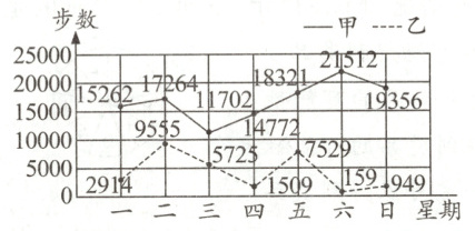 2. 新情境 知识科普 《中国居民膳食指南》建议主动身体活动最好每天6000步。下图是甲、乙两人某周的微信步数统计图,下列描述正确的是( )。