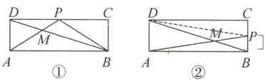 [解析:如图①,当点P在线段CD上时,因为$S_{三角形PBM}:S_{三角形ABM}=1:2$,所以$PM:AM = 1:2$,所以$S_{三角形PDM}:S_{三角形ADM}=1:2$。因为$S_{三角形PBM}+S_{三角形ABM}=S_{三角形PAB}=\frac{1}{2}×16×5 = 40$(平方厘米),所以$S_{三角形ABM}=\frac{2}{1 + 2}×40=\frac{80}{3}$(平方厘米),所以$S_{三角形ADM}=S_{三角形ABD}-S_{三角形ABM}=40-\frac{80}{3}=\frac{40}{3}$(平方厘米),所以$S_{三角形ADP}=S_{三角形ADM}+S_{三角形PDM}=\frac{40}{3}+\frac{40}{3}×\frac{1}{2}=20$(平方厘米),则$DP = 20×2÷5 = 8$(厘米),点P的运动时间为(5 + 8)÷1 = 13(秒)。