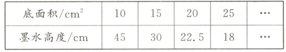 如果墨仓底面积用S表示,墨水的高度用h表示,S和h成( )比例关系;如果墨仓的底面积是30cm²,则墨水高度是( )cm。