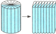 8. 如图,将一个底面半径为5厘米的圆柱的底面分成许多相等的扇形,把圆柱切开,再拼成一个近似的长方体。已知长方体前面的面积是157平方厘米,那么圆柱的体积是( )立方厘米。