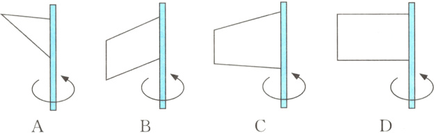 1. 在研学基地,明明利用木棒为轴旋转,在下面图形中,可以得到圆柱的是( )