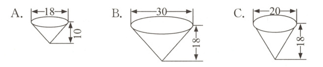 2. 新素养 几何直观 君君做了一个圆柱形的容器(如图),若要将圆柱形容器中的水倒入下面选项中的圆锥形容器中,正好倒满的是( )。(单位:cm)